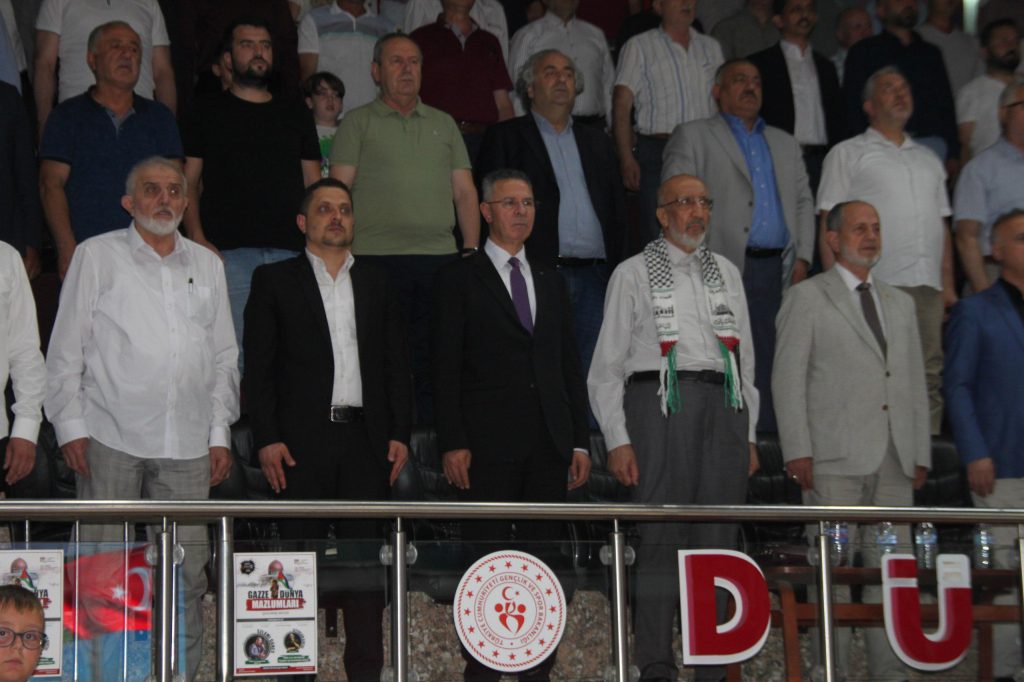 Düzce’de de gündemden düşmeyen Gazze konusuna ilişkin eylemler, gösteriler, yürüyüşler ve basın açıklamaları hemen her gün hayata geçiriliyor. Bu çerçevede, dün akşam 18 Temmuz Kapalı Spor Salonu’nda “Gazze ve Dünya Mazlumları Şahlanış Gecesi” adı verilen ve Düzce’nin ev sahipliği yaptığı bir program gerçekleşti.