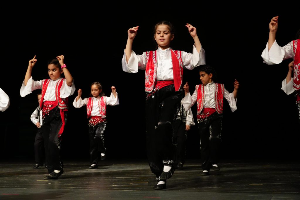 Öğrencilerin halk oyunları, modern dans ve bale performansları sergilediği etkinlikte, jimnastik gösterisi de sunuldu. Çocuk korosu ise yine çocuklardan oluşan orkestra eşliğinde birbirinden güzel eserleri icra etti. Enerjik performansları ile sahneyi adeta bir şölen alanına dönüştüren öğrencilerin üstün performansları tam not aldı.