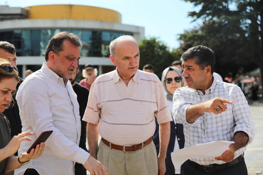 Başkan Özlü’nün ikinci durağı cami-meydan-çarşı konseptinde tasarlanan Kent Meydanı Projesi’nin uygulandığı Cedidiye Meydanı oldu. Meydanda, zemin iyileştirme düzenlemeleri kapsamında yapımına başlanan granit taş döşeme çalışmalarını inceleyen Özlü, projenin ilerleyiş süreci ve çalışma takvimi ile ilgili ekibiyle istişarelerde bulundu. Projenin 2. etabının kısa süre içinde başlanacağı bildirildi.