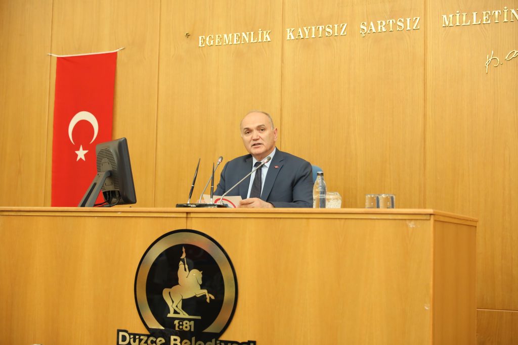 Düzce Belediye Meclisi’nin Ağustos ayı birinci birleşimi gerçekleştirildi. Toplantıya Düzce Belediye Başkanı Dr. Faruk Özlü de katıldı. Meclis üyelerini tek tek selamlayan Özlü, son 2 aylık dönemdeki icraatlar ve projelere ilişkin meclis üyelerine detaylı bilgiler sundu.