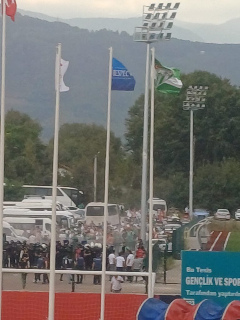 Maçın devre arasında rakip takımın stada giremeyen taraftarları saha dışında tansiyonu yükseltip olaylar çıkarmaya çalıştı. Polisin müdahalesi sonrası Tribünde bulunan Bursaspor taraftarları da stadı terk etti. Saha dışında güvenlik güçlerinin aldığı yoğun tedbirler sonrası Bursaspor taraftarları olaylar yüzünden stada geri alınmadı.