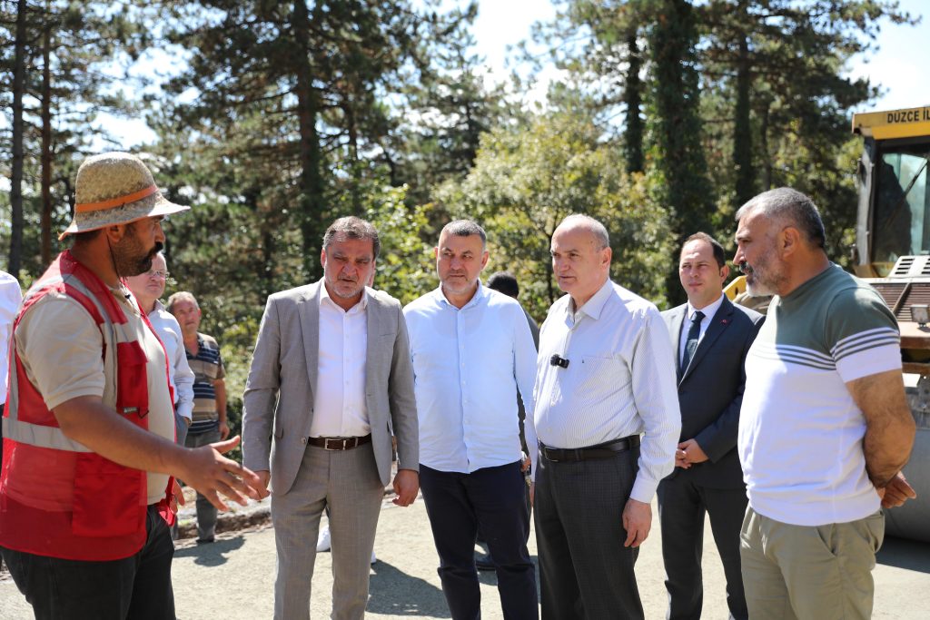 Düzce Belediye Başkanı Dr. Faruk Özlü, belediye başkan yardımcıları ile birlikte Korugöl Tabiat Parkı güzergahında devam eden yol yapım çalışmalarını inceledi.