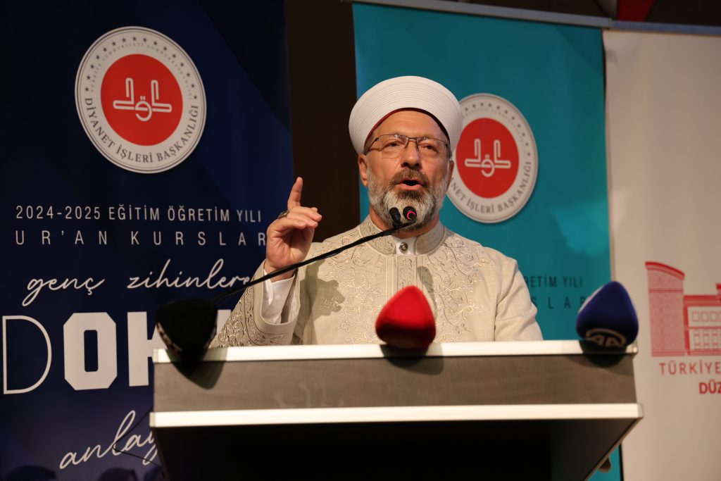 Programın son bölümünde; konuşmasını yapmak üzere kürsüye davet edilen Diyanet İşleri Başkanı Prof. Dr. Ali Erbaş; ilim, irfan ve muhabbet ocağı Kur’an Kurslarının yeni eğitim dönemine başlamasının sevinç ve heyecanını yaşadıklarını ifade etti. Peygamberimizin, 23 yıl boyunca, Kur’an’ın, insanları karanlıktan aydınlığa çıkarmak için gönderilme emrini yerine getirerek ‘o nurun’ yaygınlaşmasına vesile olduğunu dile getiren Prof. Dr. Ali Erbaş, Kur’an’ın nurunu her yerde aydınlatmak için öğrenmeye, anlamaya ve yaşamaya söz verdiklerini yüksek sesle vurguladı.