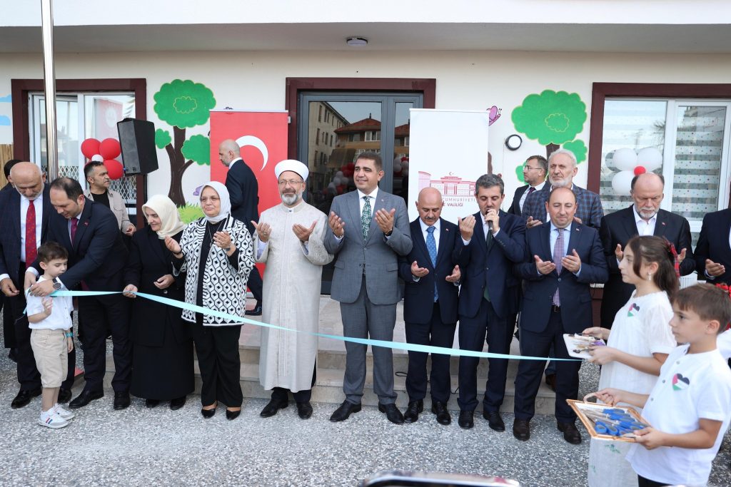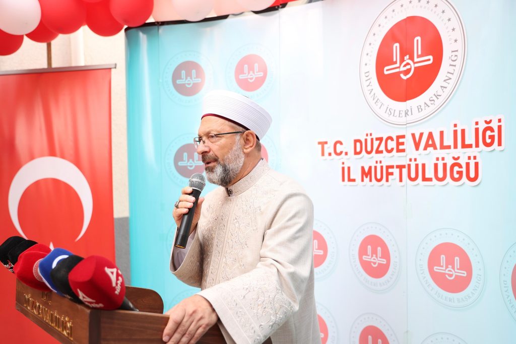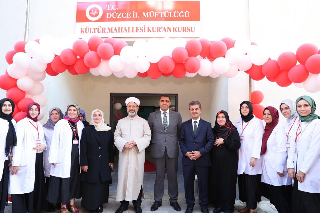 Türkiye genelinde 2024-2025 Kur’an kursları eğitim-öğretim döneminin açılışı, Düzce’de Diyanet İşleri başkanı Ali Erbaş’ın da katıldığı programla yapıldı. Program için Düzce’ye gelen Erbaş, hayırseverler tarafından yaptırılan iki tane 4-6 yaş Kur’an kursunun açılışını da yaptı. Kur’an kurslarının açılışında konuşan Erbaş, hayır yapmakta hayırseverlerin birbirleriyle yarışmaları gerektiğini belirten ayetleri hatırlatarak, “Rabbimiz ’Hayırda yarışınız. O hayırda yarışanlar var ya cennete en yakın olan onlardır, Allah’a en yakın olan onlardır’ buyuruyor. İşte bugün açılışını yapmış olduğumuz bu Kur’an kurslarında olduğu gibi bu Kur’an kurslarının projesinden tamamlanmasına kadar emeği geçen herkes, o hayırda yarışanlar içerisinde yer alıyor. Sonunda cennet var. Cenab-ı Hakk’ın rahmetinden, mağfiretinden istifade etmek isteyen herkes hayırda yarışsın” dedi.