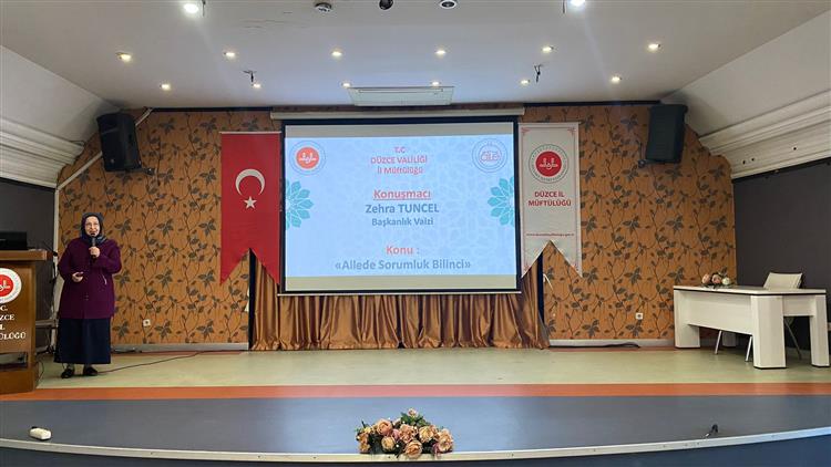Düzce’de Müftülük personeline yönelik düzenlenen konferansa Diyanet İşleri Başkanlığı Başkanlık Vaizi Zehra Tuncel konuşmacı olarak katıldı.