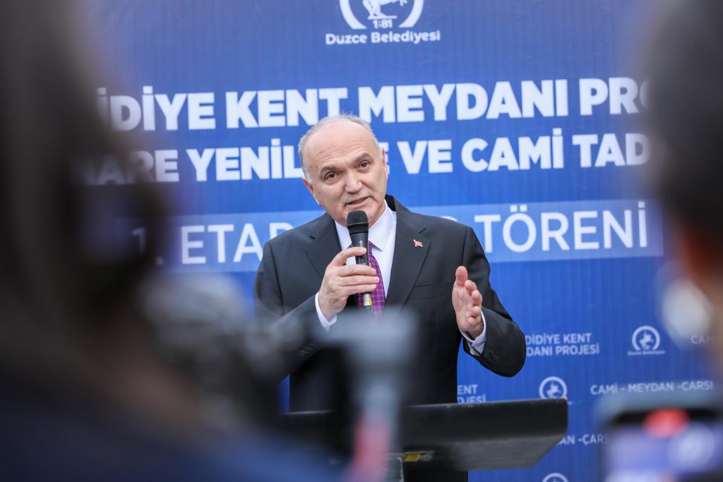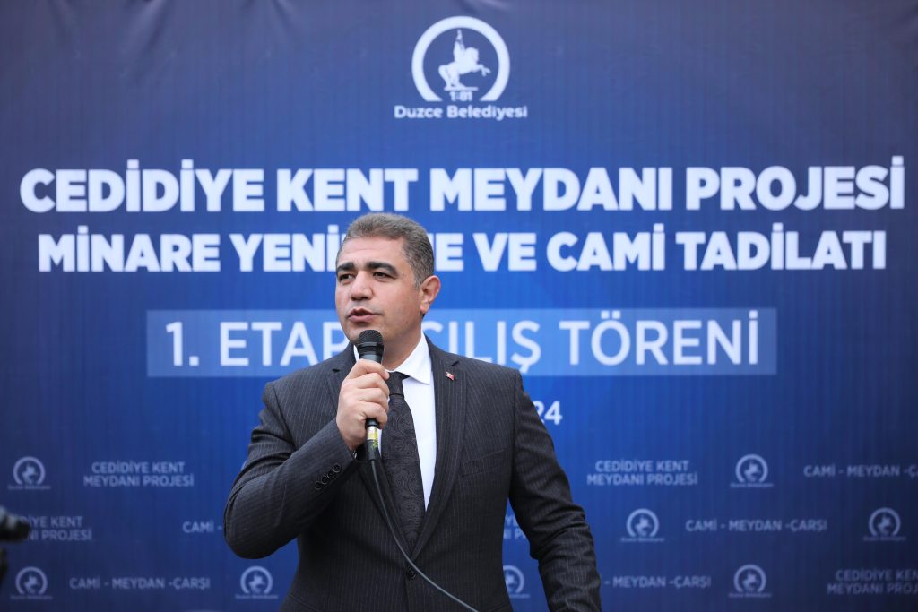 Kur’an-ı Kerim tilaveti ile başlayan törende konuşan Düzce Valisi Selçuk Aslan, 12 Kasım Düzce depreminde yaşanan kayıplar ve yıkılan bina istatistiklerini kısaca paylaşarak, devletin desteği ile bugünkü Düzce’nin yeniden inşa edildiğini dile getirdi. Aslan, Cedidiye Meydan Projesi vizyonunu hayata geçiren Düzce Belediye Başkanı Dr. Faruk Özlü başta olmak üzere emeği geçenlere ve hayırsever iş insanı Burhan Özdemir’e teşekkür etti.