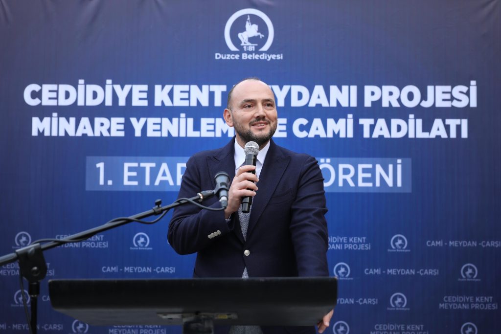 Düzce Belediye Başkanı Dr. Faruk Özlü’nün şehir merkezinin son yıllardaki en önemli meydanlarından biri olarak bilinen Cedidiye Camii ve çevresi için hazırladığı Kent Meydanı Projesi’nin 1. Etabında çalışmalar tamamlandı. 12 Kasım Düzce Depremi’nin yıl dönümünde düzenlenen törenle yeni işyerleri ile Cedidiye Camii’nin yenilenen yüzü Düzcelilere takdim edildi.