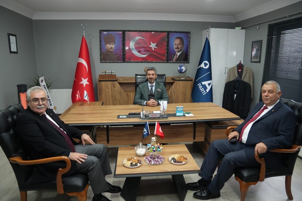 Düzce Ticaret ve Sanayi Odası Yönetim Kurulu Başkanı Erdoğan Bıyık, Yönetim Kurulu ve Meclis Üyeleriyle birlikte Düzce’de teşkilatlanma çalışmalarını tamamlayan Anahtar Parti İl Başkanı Metin Topal ve İlçe Başkanı Rasim Mercan’ı ziyaret etti.