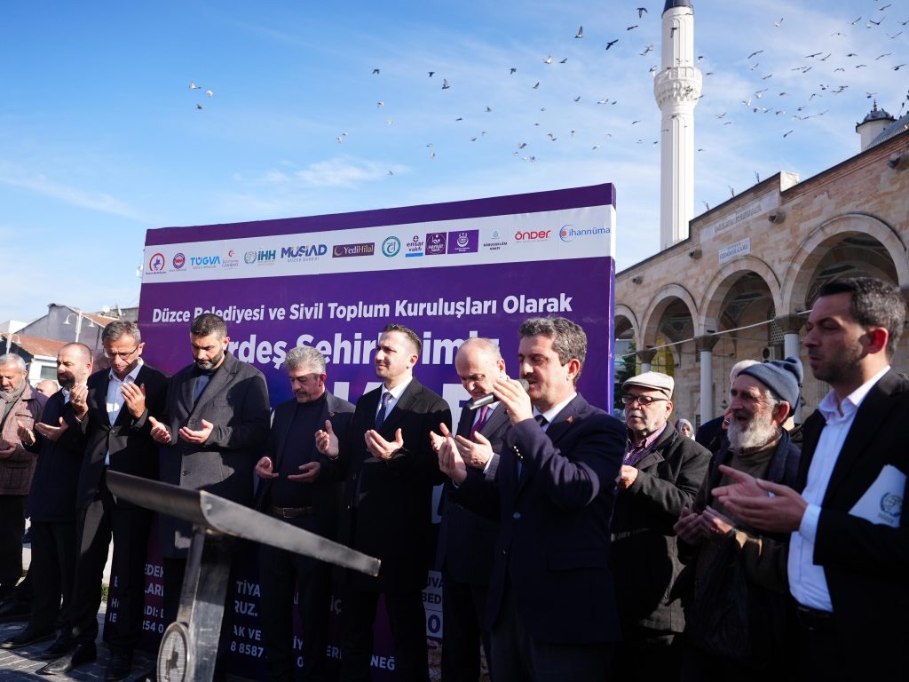 Düzce Belediyesi ve sivil toplum kuruluşları iş birliğinde “Kardeş Şehirlerimiz Şam ve Halep’in Yanındayız” adlı yardım kampanyası başlatıldı. Yardım kampanyasının tanıtımı amacıyla Cedidiye Meydanı’nda düzenlenen programda konuşan Düzce Belediye Başkanı Dr. Faruk Özlü, “Dün olduğu gibi; gelecekte de mazlumların ve mağdurların yanında olmaya devam edeceğiz” diyerek, vatandaşları yardım kampanyasına destek olmaya davet etti.