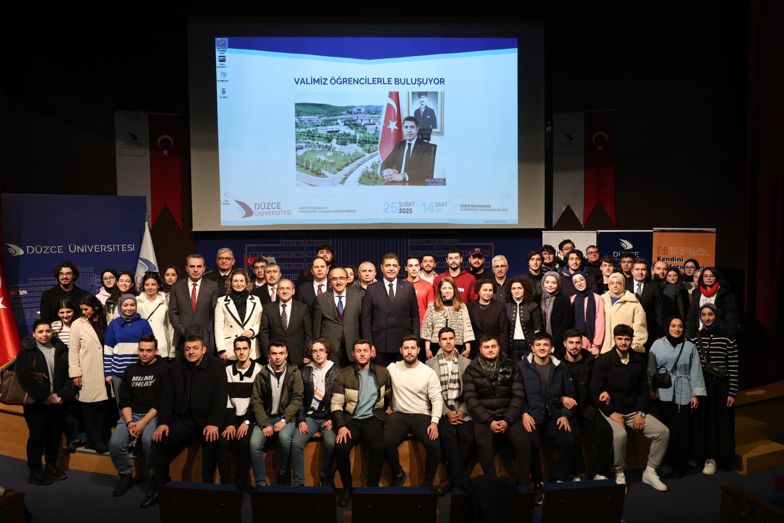 Düzce Üniversitesi Kariyer Geliştirme ve Mezun İzleme Uygulama Araştırma Merkezi tarafından organize edilen “Valimiz Öğrencilerle Buluşuyor” söyleşisi, Cumhuriyet Konferans Salonu’nda gerçekleştirildi.