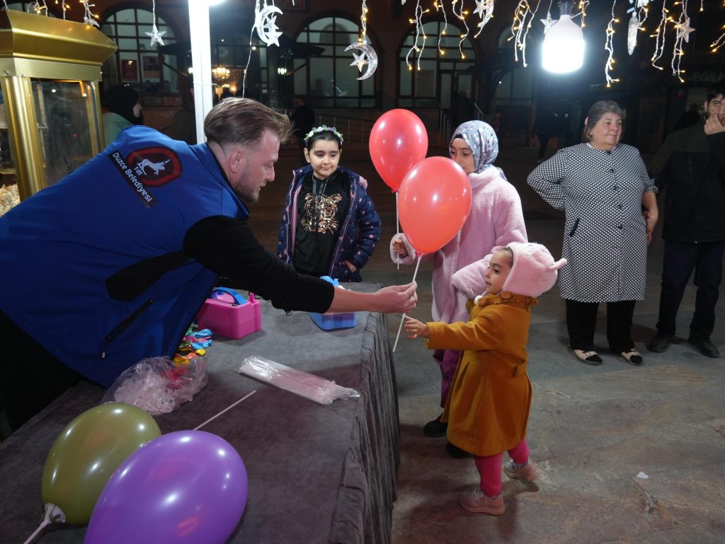Düzce Belediyesi Sosyal Yardım İşleri Müdürlüğü, vatandaşlarla paylaşmanın ve dayanışmanın simgesi olarak Büyük Cami önünde ikramlıklar