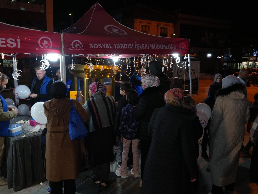 dayanışmanın öne çıktığı Ramazan ayında vatandaşlarla ikramlıklar paylaşıldı. Büyük Cami önünde kurulan standda; patlamış mısır, pamuk