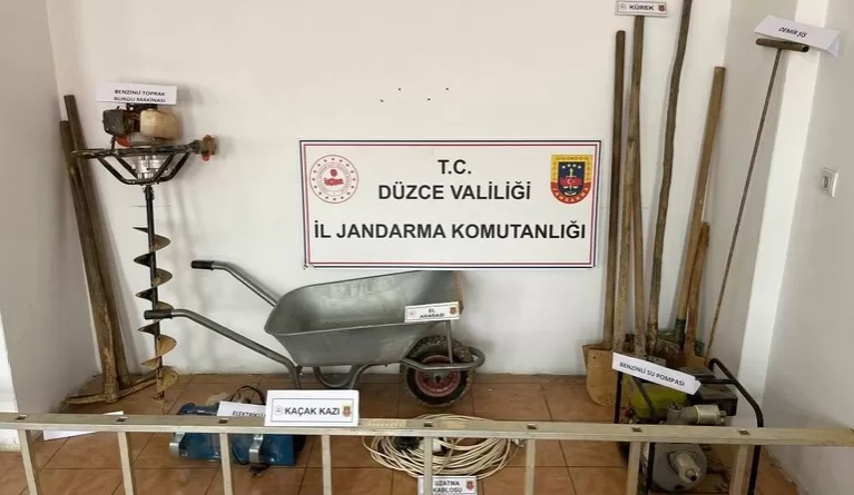 jandarma Komutanlığı ekiplerince izinsiz kazı yapıldığı duyumu üzerine 2 katlı evin bulunduğu adrese yapılan operasyonda evinin içerisinde kazılmış yaklaşık 10 metre derinliğinde 1 metre çapında bir çukurun olduğu görüldü. Çukurun devamında da yaklaşık 15 metre uzunluğunda bir tünel kazıldığı tespit edildi. Evde yapılan aramada; 1 elektrikli vinç, 1 benzinli su pompası 1 toprak burgu makinası, 1 el arabası, 2 adet 4 metrelik merdiven, 2 kazma, 2 çapa, 4 kürek, 1 adet 2 metre uzunluğunda demir şiş ve 30 metre uzatma kablosu ele geçirildi.