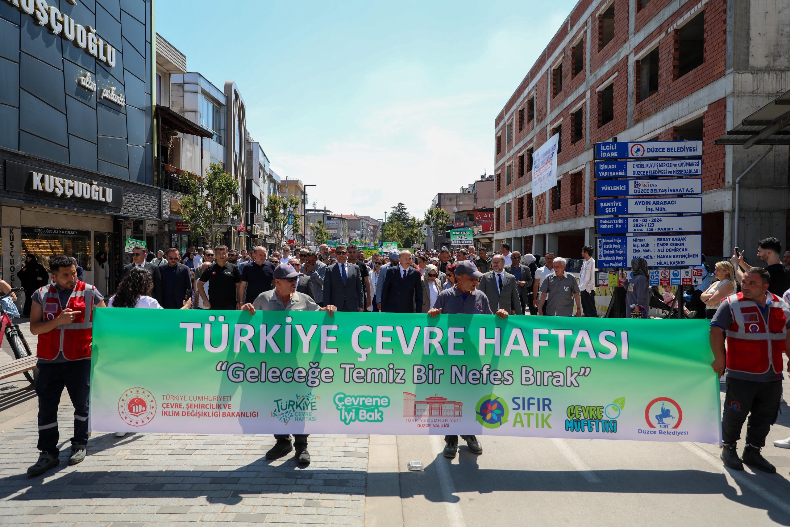 Çevre bilincini artırmak amacıyla düzenlenen Türkiye Çevre Haftası, Düzce’de kortej yürüyüşüyle başladı. Açılış töreninde konuşan Vali Selçuk Aslan, Türkiye’nin en büyük sıfır atık oyuncak müzesinin Düzce’de kurulacağını müjdeledi. Başkan Dr. Faruk Özlü ise çok yakında çöpleri kaynağında ayrıştırma sistemine geçeceklerini duyurdu.