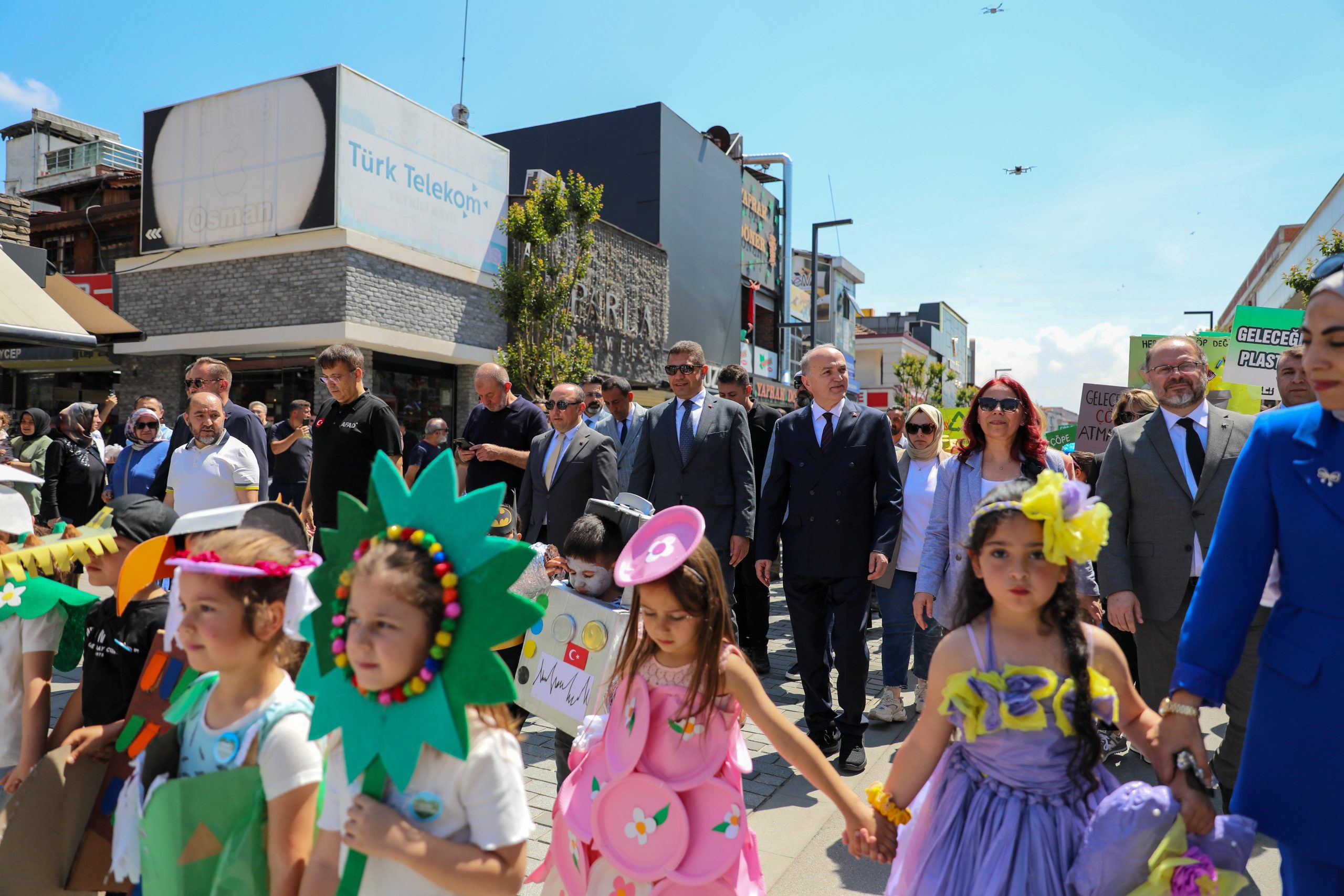 Türkiye Çevre Haftası etkinlikleri Düzce’de kortej yürüyüşüyle başladı. Cedidiye Meydanı’ndan Millet Bahçesi’ne uzanan yürüyüşe; Vali Selçuk Aslan, Belediye Başkanı Dr. Faruk Özlü, protokol üyeleri ve öğrenciler katıldı. Düzce Belediyesi Temizlik İşleri Müdürlüğü personelleri ellerinde taşıdıkları dövizler ile çevreye duyarlılık konusunda önemli mesajlar verdi. Öğrenciler ise birbirinden renkli sıfır atık temalı kostümleri ile yürüyüşe renk kattı.