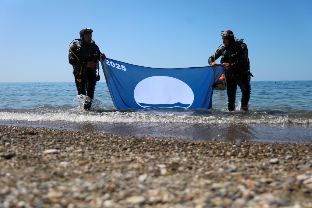 Tören Ceneviz Kalesi Plajı’na asılacak Mavi Bayrak’ın dalgıçlar tarafından denizden çıkarılması ve göndere asılması ile sona erdi.