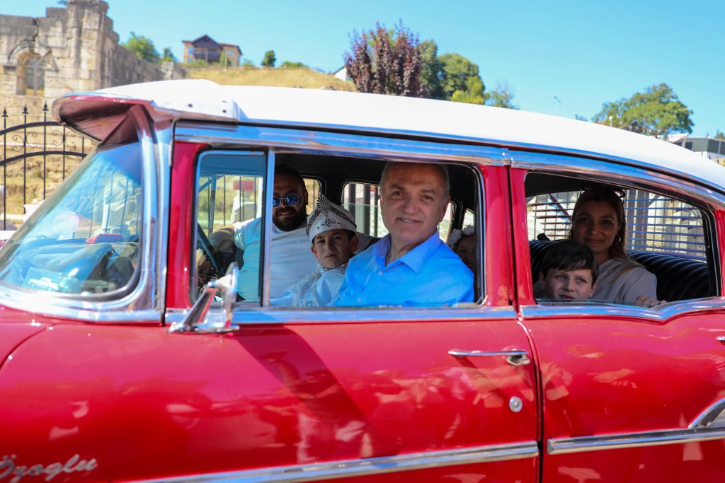 Düzce Belediye Başkanı Dr. Faruk Özlü, Düzce Milletvekili Ayşe Keşir ve Vakıflar Genel Müdürlüğü Ankara Vakıflar Bölge Müdür Yardımcısı Bilal Akgül, çocukları burada karşıladı. Davul zurna eşliğinde kısa süreli eğlenen çocuklar fotoğraf çekimi sonrası kendileri için özel hazırlanarak süslenen klasik araçlara bindi. Başkan Özlü sünnet aracının direksiyonuna geçerek konvoya öncülük etti.