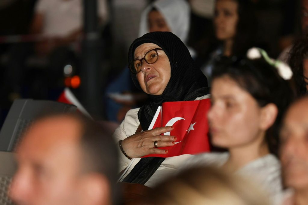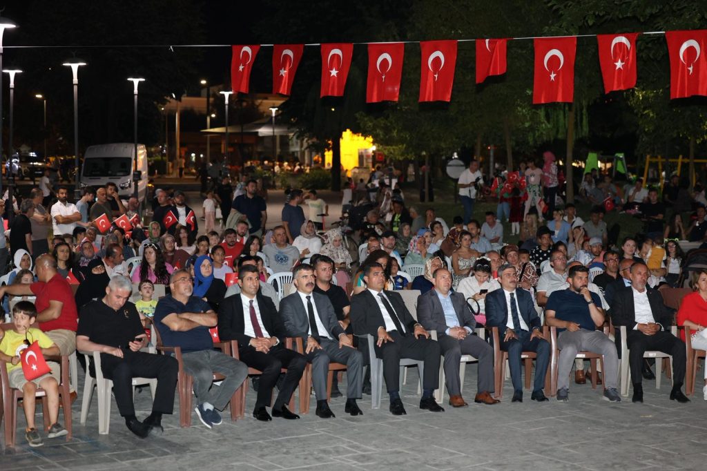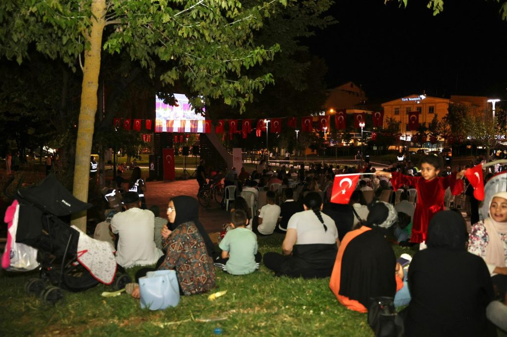 Millet bahçesinde bulunan led ekranlarda açık havada hain girişiminde o gece yaşananları ve olayların içerisinde olan kişilerin hayat hikayelerinin anlatıldığı “15.07 Şafak Vakti” filmi izletildi. Duygu dolu anların yaşandığı film gösteriminde bazı vatandaşlar gözyaşlarına hakim olamadı.