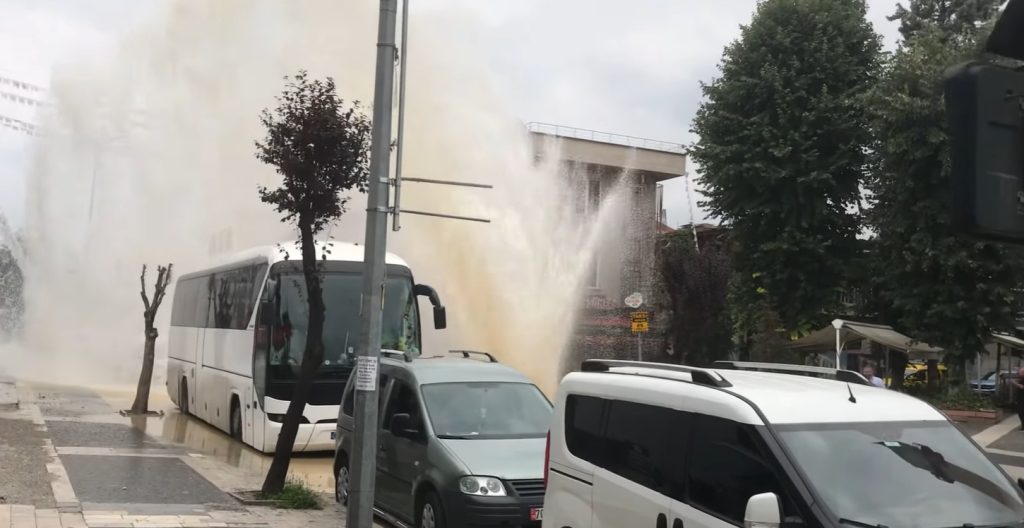 Atatürk Bulvarı’nda bulunan Gürcü Osman Camii önünde bölgenin su ihtiyacını karşılayan ana su boru hattında patlama meydana geldi.