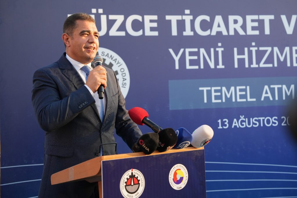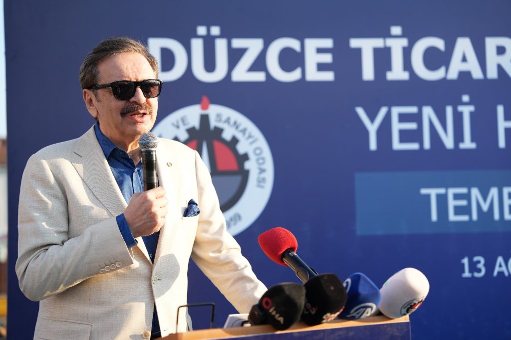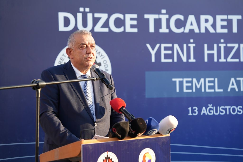 Temel atma töreninde konuşan TOBB Başkanı M. Rifat Hisarcıklıoğlu, “Düzce’de böyle bir hizmet binasının temel atma törenine katılmaktan büyük gurur duyuyorum. Düzce iş dünyasında il protokolünün verdiği desteklerden ötürü teşekkür ediyorum. Bir şehirde başarı böyle birlik ve beraberlikten geçiyor. Marka olan şehirlerin hepsine bakın hepsinde bu şekilde birlik ve beraberlik var. Bu sebepte Düzce’de yakında marka olacak. Allah onlardan razı olsun. Bugün Türkiye teknolojide kendi arabasını çıkartabildiyse savunma sanayinde başarılar yapabiliyorsa Düzce Belediye Başkanı Dr. Faruk Özlü sayesindedir. Düzce’nin dışında da çok bilen yok ama ben her yerde bunu söylüyorum” dedi.