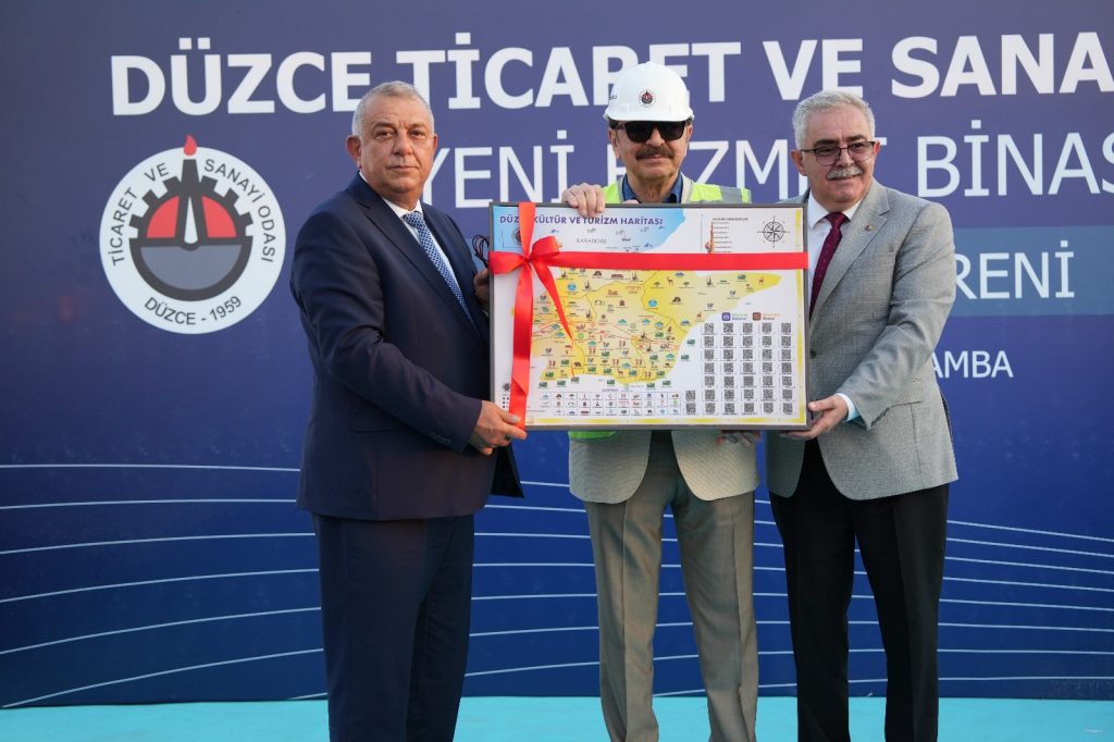 Düzenlenen temel atma törenine; TOBB Başkanı M. Rifat Hisarcıklıoğlu, Düzce Valisi Selçuk Aslan, Düzce Milletvekili Ercan Öztürk, Düzce Belediye Başkanı Dr. Faruk Özlü, Düzce Üniversitesi Rektörü Prof. Dr. Nedim Sözbir, Düzce TSO Yönetim Kurulu ve Meclis Üyeleri, sanayici iş insanları ve il protokolü katıldı.