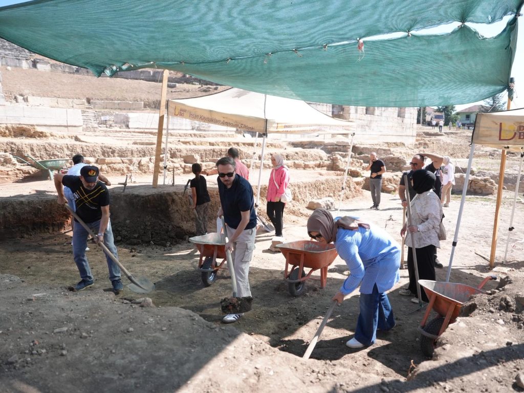 Düzce’nin kültürel miraslarından Konuralp Antik Tiyatrosu’ndaki kazı çalışmaları, Düzce Belediyesi’nin güçlü desteğiyle aralıksız devam ediyor. Belediye bünyesindeki çeşitli müdürlüklerde görev yapan personeller, hafta sonlarında gönüllü olarak kazı alanında görev alarak, tarihi gün yüzüne çıkarma çalışmalarına katkı sağlıyor.