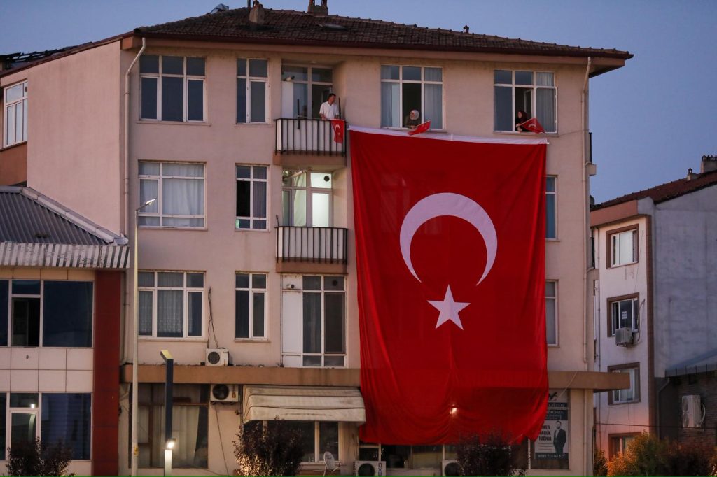 Solistlerin performansına, ellerindeki Türk bayraklarıyla vatandaşlar da eşlik etti. O anlarda karşı binadan dev bir Türk bayrağının açılmasıyla Asar Kemer Park adeta bir görsel şölene dönüştü.