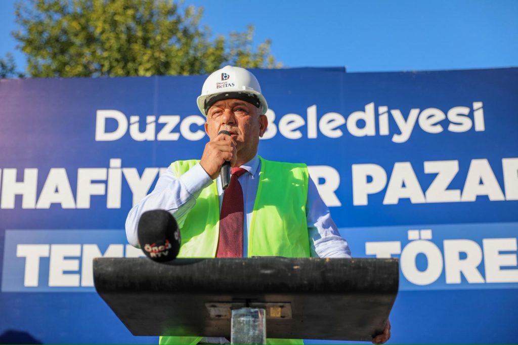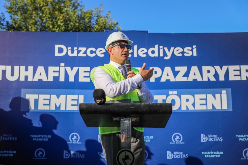Düzce Belediyesi tarafından Aziziye Mahallesi’nde inşa edilecek olan Tuhafiyeciler Pazaryeri’nin temeli atıldı. Toplam 3.800 m² alana sahip, 138 tezgahlı ve aynı zamanda fuar alanı olarak kullanılacak modern yapının kısa sürede tamamlanması hedefleniyor.