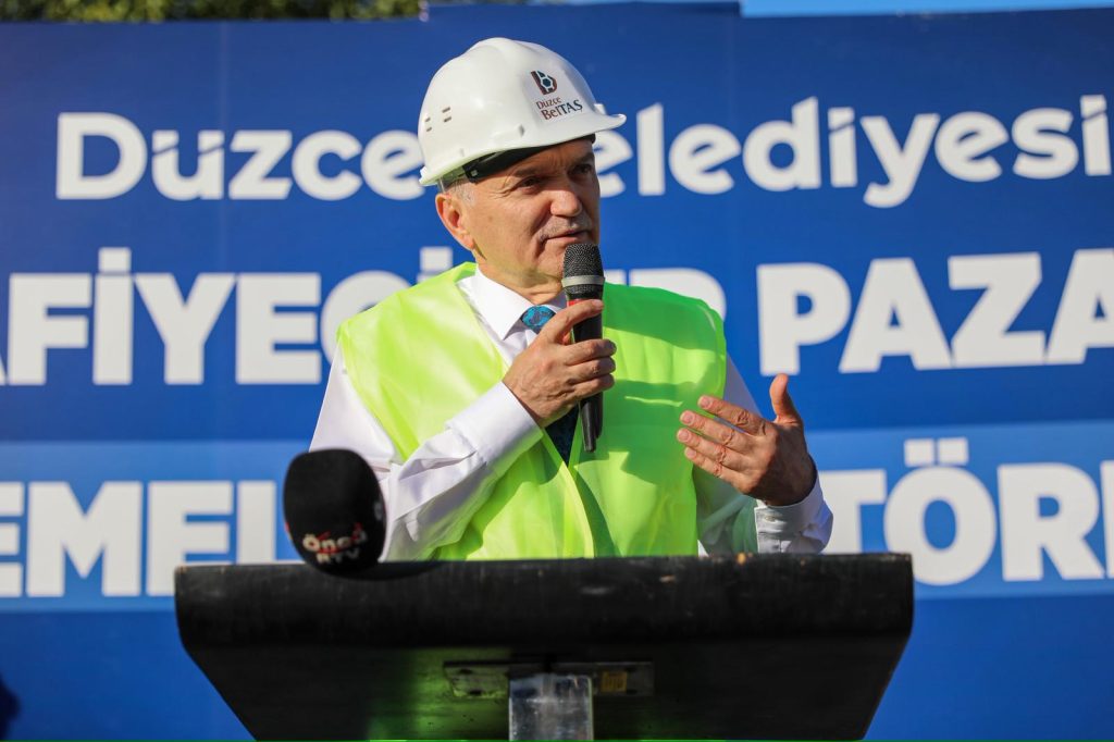 Düzce Valisi Selçuk Aslan, törende yaptığı konuşmada Düzce’nin kamu yatırımları açısından dinamik bir şehir olduğunu belirterek şunları söyledi: “Seçilmişler ve merkezi hükümeti temsil edenlerle el ele, iyi bir koordinasyonla sürekli ihtiyaçları karşılayan yatırımlar yapılıyor. Devlette tasarruf tedbirlerinin uygulandığı bir dönemde, bu denli büyük bir yatırımı hayata geçirmek kolay değil. Sayın bakanımızı ve Düzce Belediyemizi tebrik ediyorum. Burası sadece bir pazaryeri değil, aynı zamanda fuarların ve panayırların da yapılacağı bir cazibe merkezi olacak.”