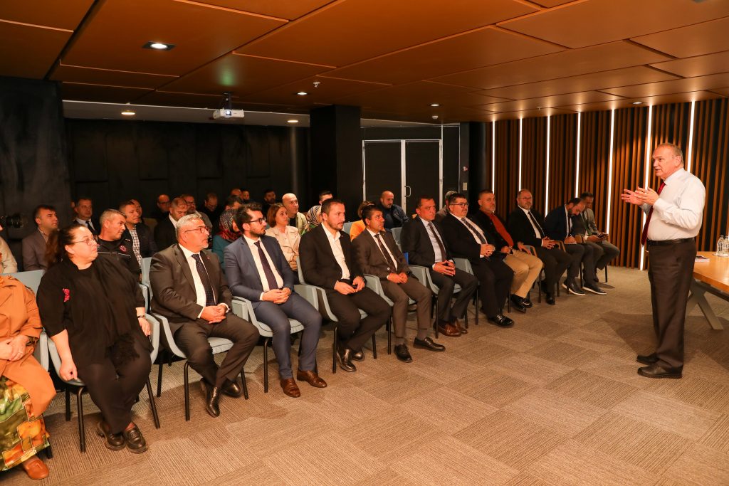 Prof. Dr. Erol Güngör Kültür Merkezi Mavi Salon’da düzenlenen istişare toplantısına AK Parti Düzce İl Başkanı Hasan Şengüloğlu, belediye meclis üyeleri, başkan yardımcıları, birim müdürleri ve belediye şirketlerinin yöneticileri de katıldı.