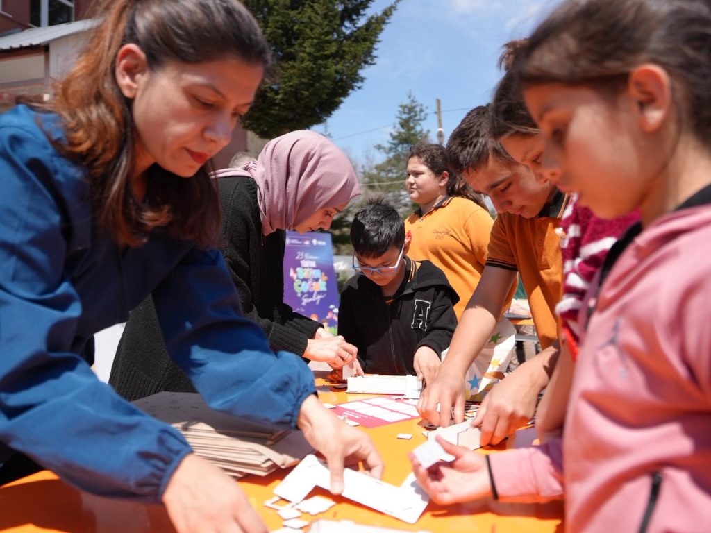 Düzce Belediyesi Bilim Merkezi ve Çocuk Üniversitesi işbirliğinde düzenlenen şenlikte 6 ayrı stand kuruldu. 3D kalem tasarımı atölyesinde çocuklar Türk Bayrağı rozeti yaptı. Geometri tahtasında ise lastikler ile şekiller oluşturdular. En ilgi çeken stantlardan biri ise yanardağ atölyesi oldu. Karbonat ve sirkenin buluşması ile oluşan kimyasal tepkimeyi gözlemleyen öğrenciler, asit ve bazların birbirleriyle nasıl etkileşime girdiğini deneyerek kavradılar.